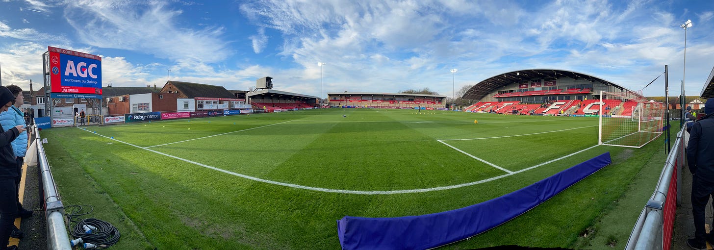 On the back wall of the home supporters’ terrace a red banner proudly pays tribute to the club’s benefactor: “ONE ANDY PILLEY”. That there is only one Andrew Pilley will be most welcome news for the victims of the multi-million-pound fraud that the former Fleetwood chairman perpetrated and for which he is currently serving a thirteen-year prison sentence. On delivering the sentence Judge Knowles KC referred to Pilley’s criminal actions as being “a sordid tale of squalid lies, greed and fraud.” With Pilley’s imprisonment clearly marking him as not being a ‘fit and proper person’ own an EFL club, Fleetwood Town acquired new owners – a company headed by current chairman Jamie Pilley (very much a relation).