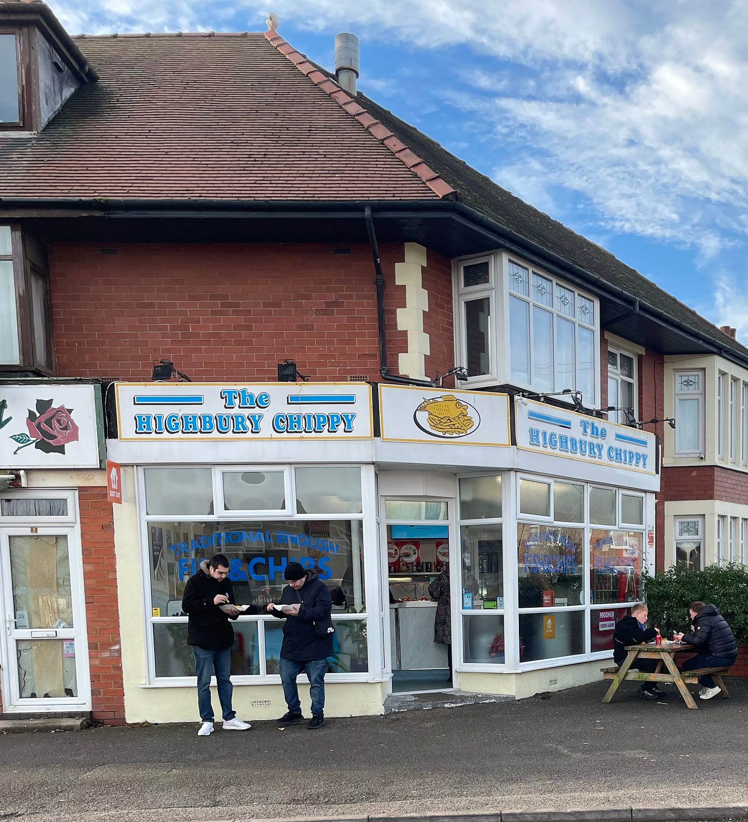 For the A Large Grouse Travel Club a trip to Fleetwood means only one thing: chips! To be more precise, ‘The Highbury Chippy’ that occupies a prime location less than a golf umbrella’s throw from the away end turnstiles. The staff are always most welcoming – which should not surprise as football supporters must provide a significant proportion of their income. A sign on the counter politely suggests a preference for payment in cash, with an explanation that not having to pay too many card transaction charges contributes to keeping their prices low. Being an obliging fellow, I was quite happy to pay for my pie and chips with a banknote and coins of the realm to the value of £5.75p (fish fork included).